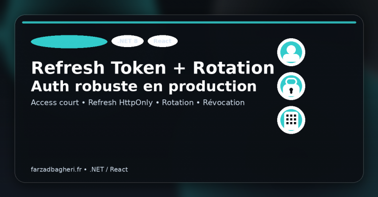 JWT • Refresh Token .NET 8 React Refresh Token + Rotation : Auth robuste en production Finis les JWT qui durent 7…